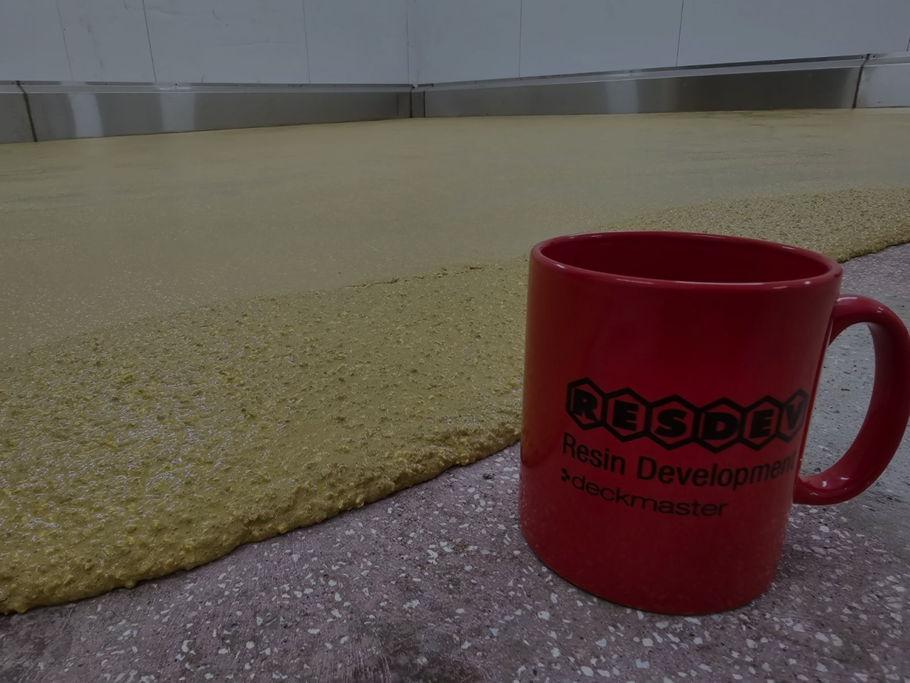 Resin rich water-dispersed polyurethane floor screed textured surface and matt finish. 3 pack 6-9mm